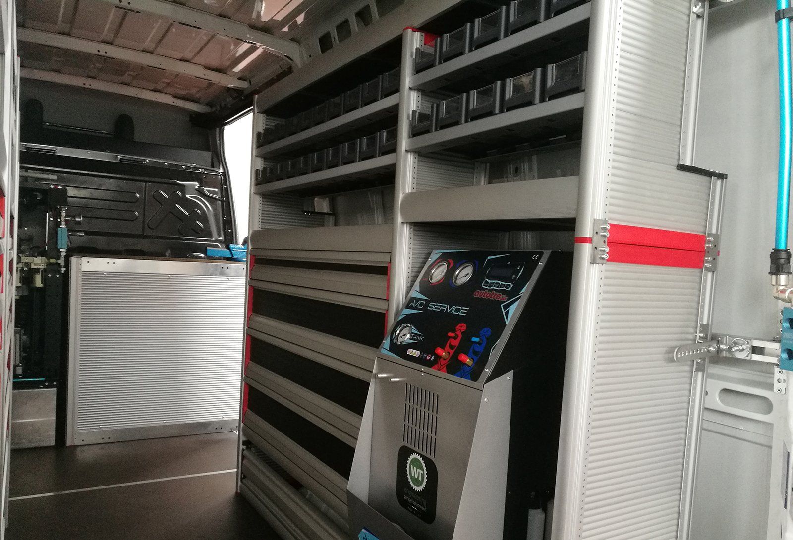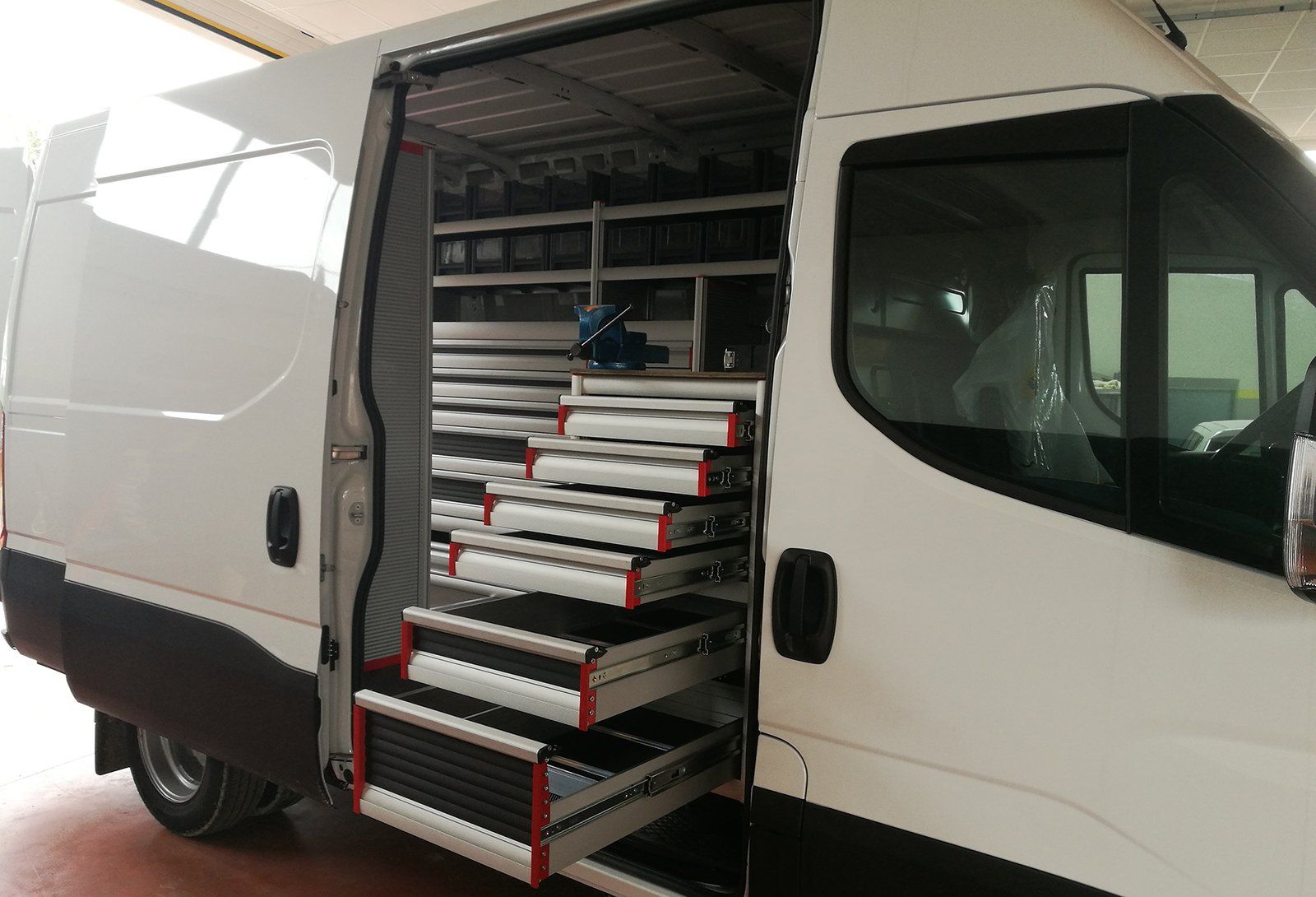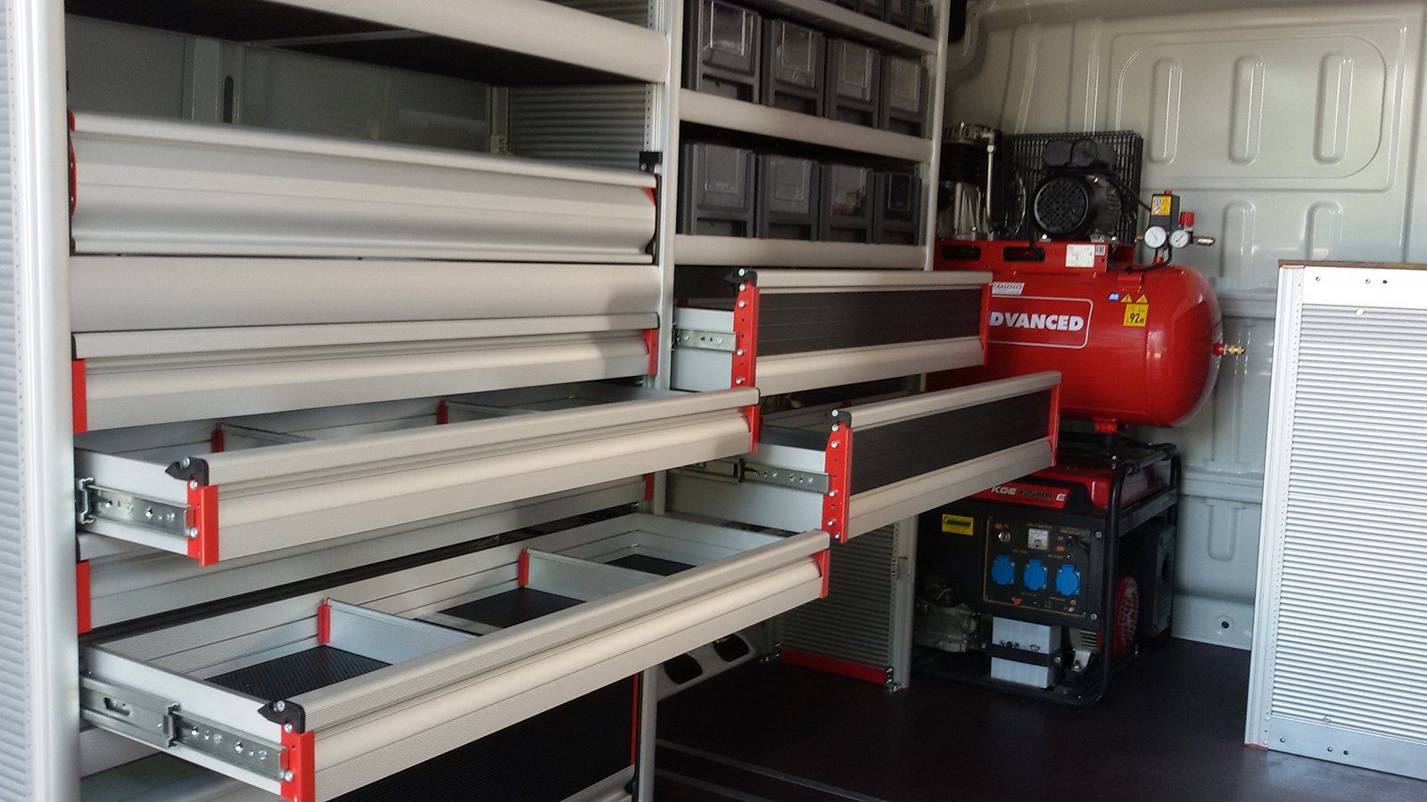 I nostri scaffali offrono ampie possibilità di personalizzazione in funzione del veicolo e dell'attività svolta.